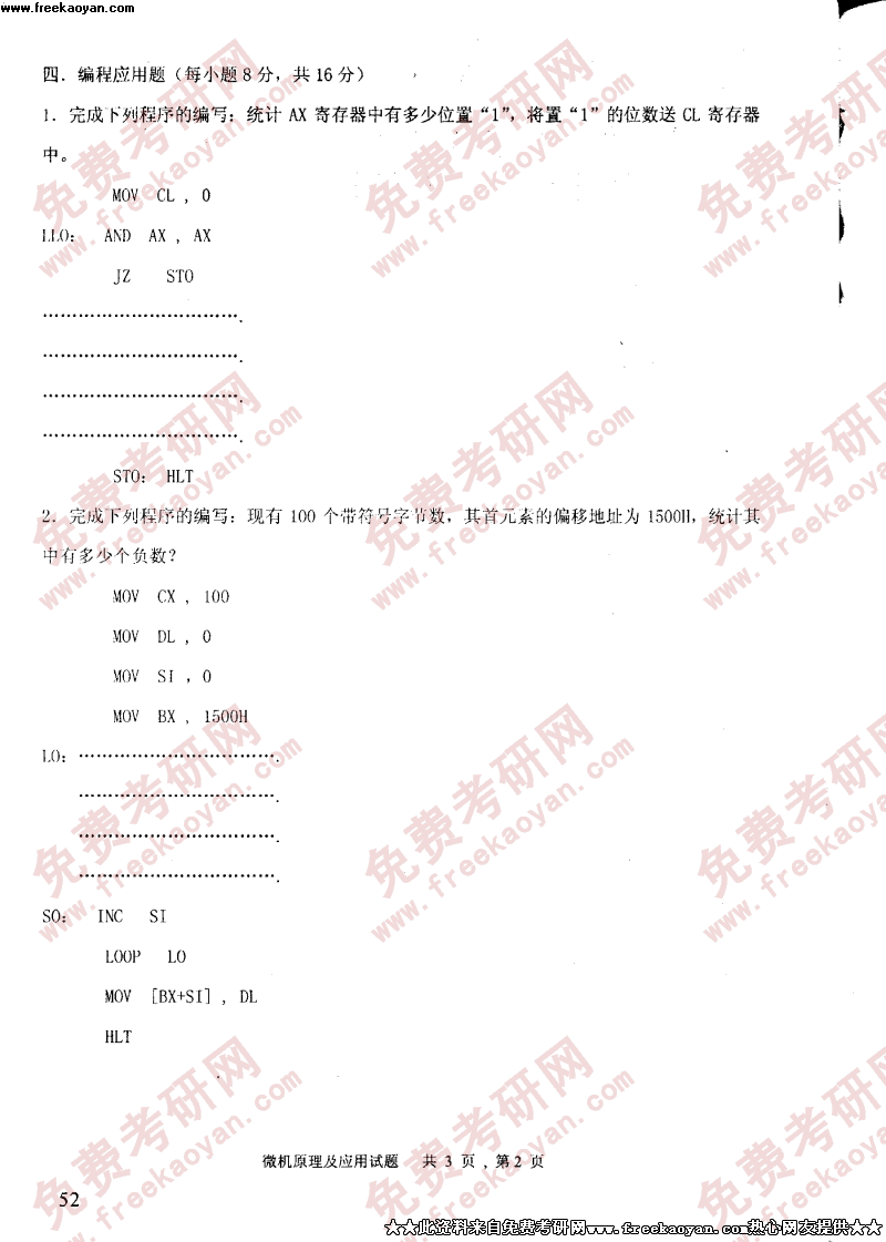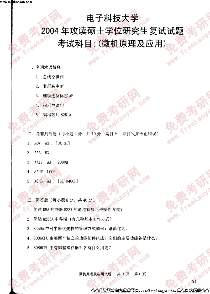电子科技大学2004年考研真题-复试微型计算机原理与应用