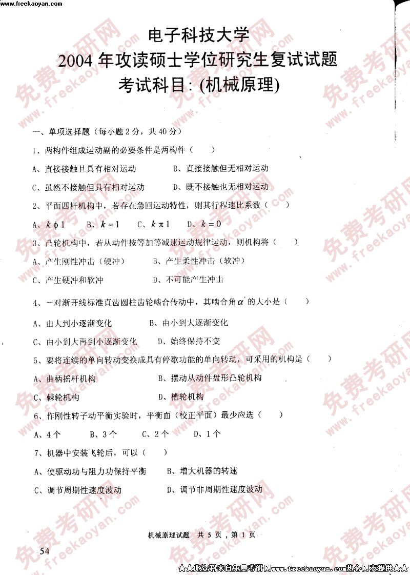 电子科技大学2004年考研真题-复试微型计算机原理与应用