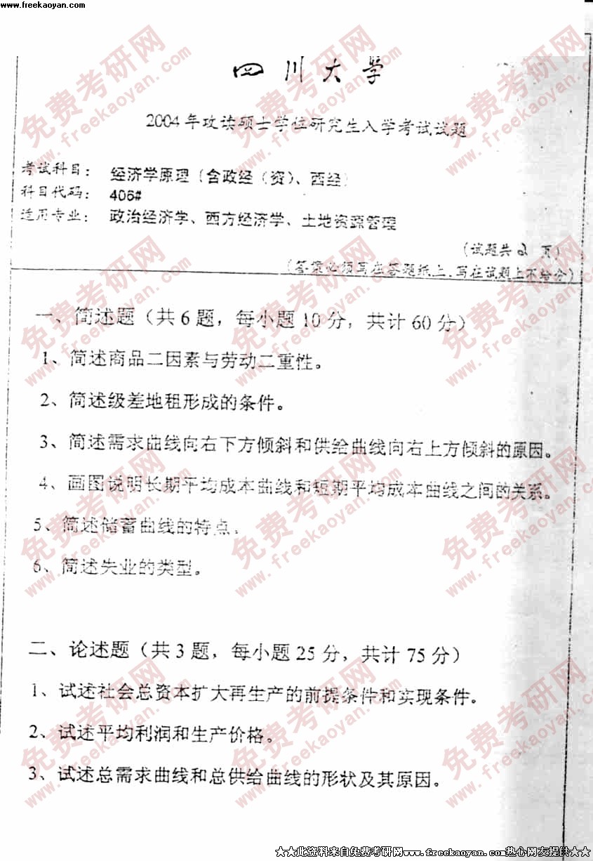 专业课考研经验 本站小编 FreeKaoyan 2018-01-221997年试题一. 词语解释(每题4分,共20分)1.形象大于思想; 2.济金根与《济金根》; 3.艺术直觉; 4.游戏说; 5.文学的民族性;二. 简答题(每题10分,共40分)1.作为一种文学的创造方法,现代主义的基本特征是什么?它的意义和局限性何在?2.结合具体的例证,简论文学风格的形成。3. ...