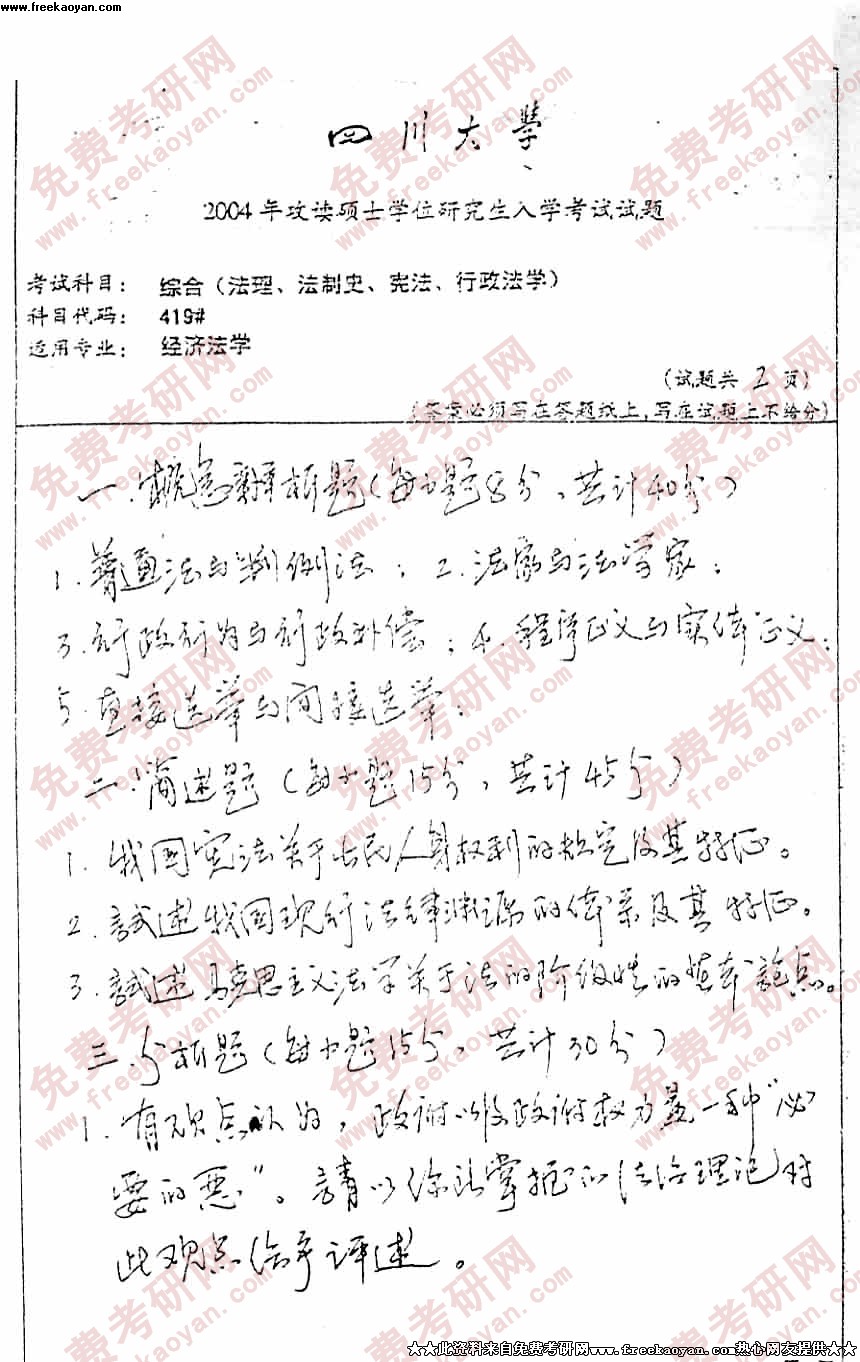 专业课考研经验 本站小编 FreeKaoyan 2018-01-221997年试题一. 词语解释(每题4分,共20分)1.形象大于思想; 2.济金根与《济金根》; 3.艺术直觉; 4.游戏说; 5.文学的民族性;二. 简答题(每题10分,共40分)1.作为一种文学的创造方法,现代主义的基本特征是什么?它的意义和局限性何在?2.结合具体的例证,简论文学风格的形成。3. ...