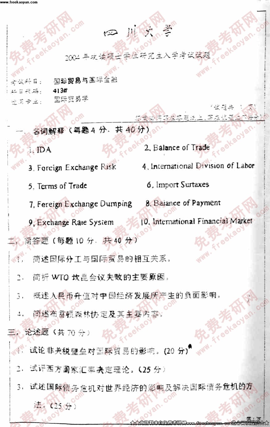 专业课考研经验 本站小编 FreeKaoyan 2018-01-22四川大学一九九七年攻读硕士学位研究生入学考试试题考试科目:生物化学适用专业:生物化学、植物学、动物学、遗传学、细胞遗传学 植物生理学、农药学、分子生物学研究方向:以上专业各方向说明:一至四题所有专业考生必作,五、六题非生物化专业考生作,七、八题生化专业考生作。一、填空题 (每空1分,共20分)1、动 ...