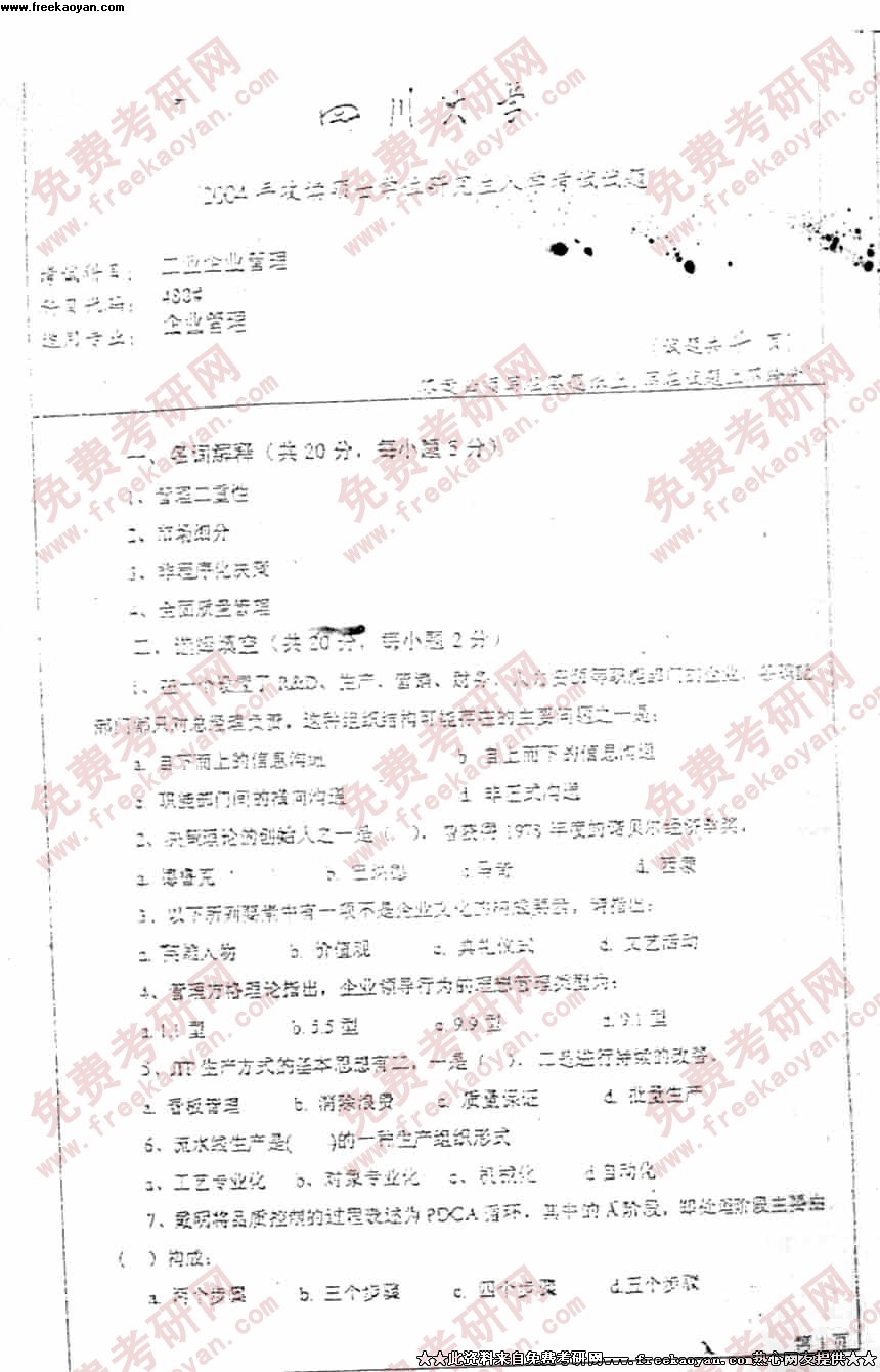 四川大学2004年考研真题-管理学综合试题