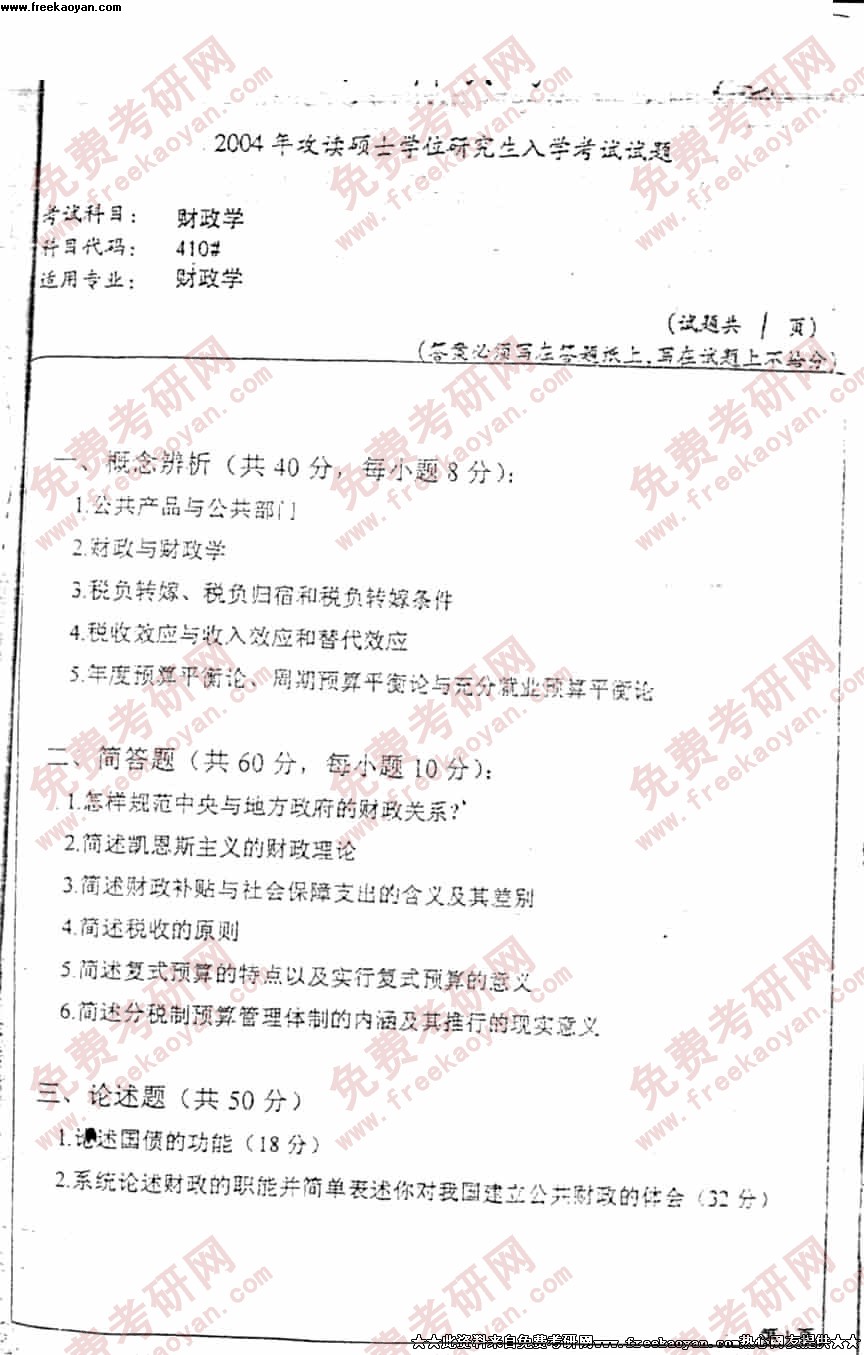 专业课考研经验 本站小编 FreeKaoyan 2018-01-22四川大学2004年考研真题-金融学专业基础课试题