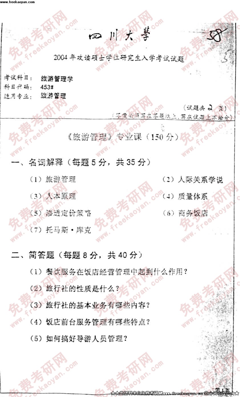 四川大学2004年考研真题-法理学刑法学、民商法学