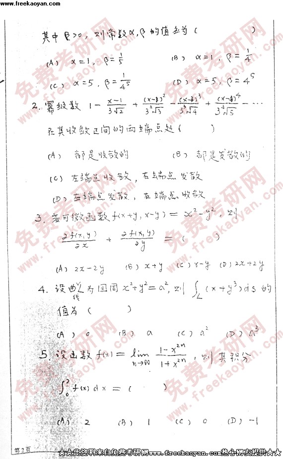 四川大学2004年考研真题-理论物理--高等数学2