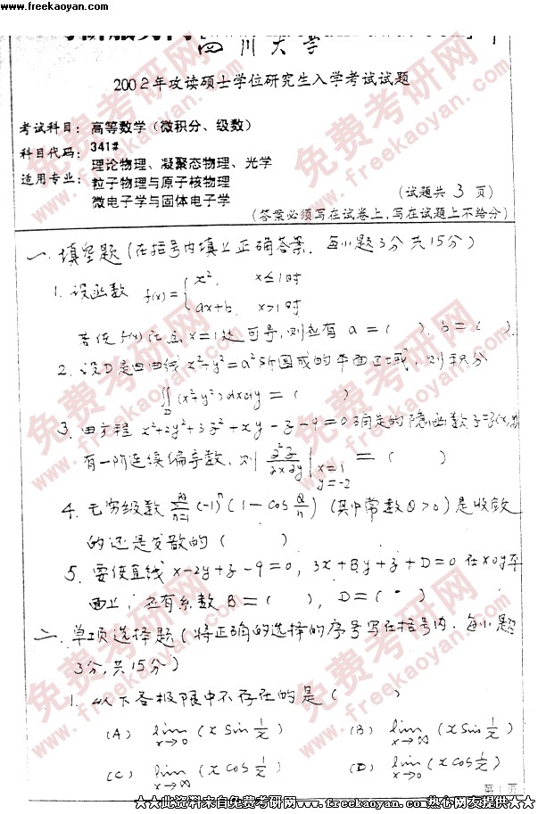 四川大学2002年考研真题-英美文学与文学史基础知识试题A