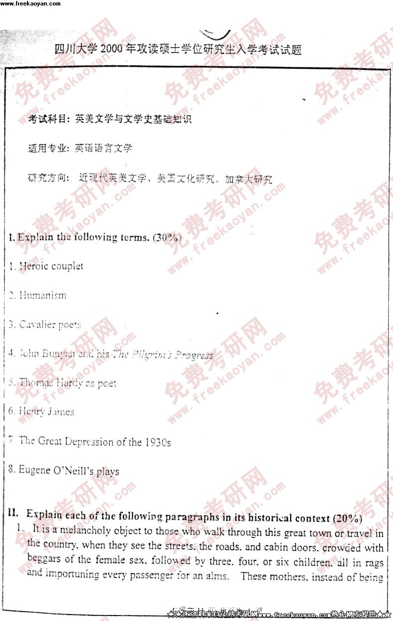 四川大学2000年考研真题-英美文学与文学史基础知识试题2