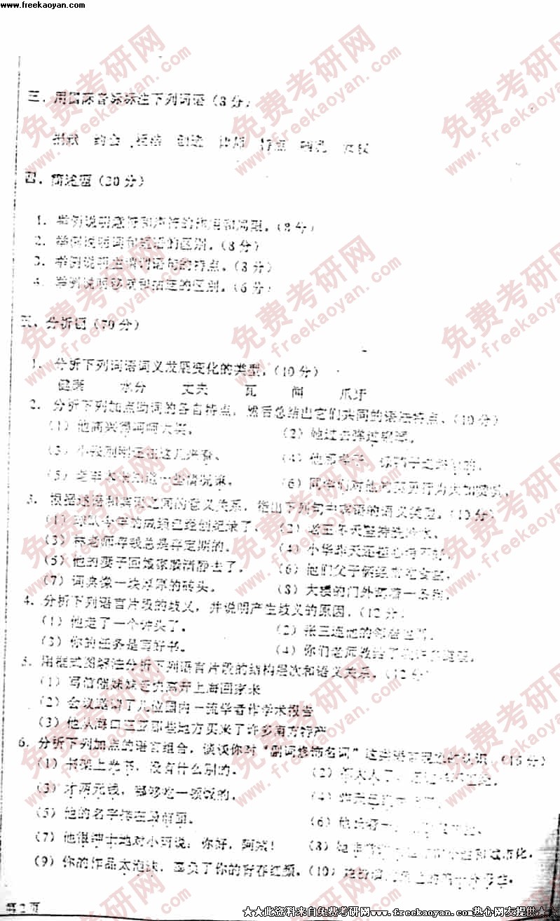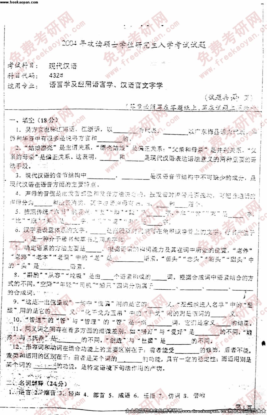四川大学2004年考研真题-现代汉语试题