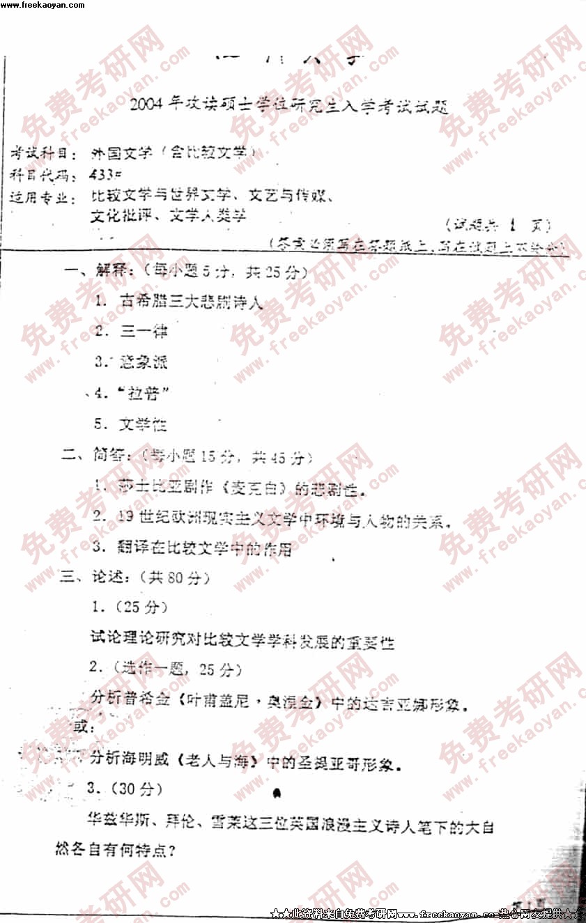 相关话题/考研真题 四川大学 试题 外国文学
