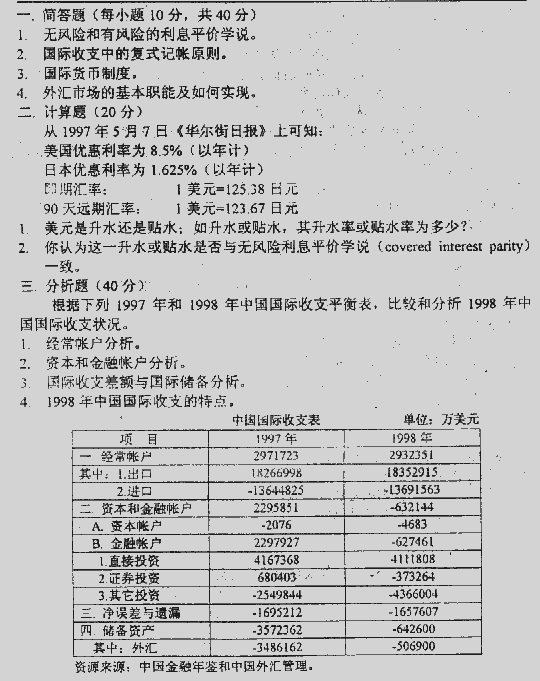 西南财经大学2000年考研真题-国际金融理论与实践