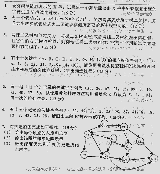 西南财经大学2000年考研真题-程序设计及数据结构