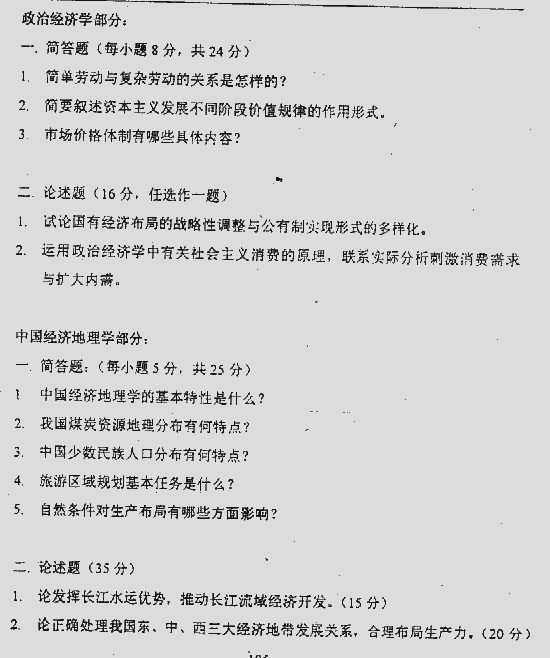 专业课考研经验 本站小编 FreeKaoyan 2018-01-22一、名词解释(每小题 6 分,共 30 分) 1. 配弟 2. 重农学派 3. 斯密教条 4. 萨伊定律 5. 边际生产力论 二、简述题(每小题 10 分,共 20 分) 1. 什么是 “ 三位一体 ” 公式? 2. 什么是 “ 时差利息论 ” ? 三、论述题(每小题 25 分,计 50 分) 1. ...