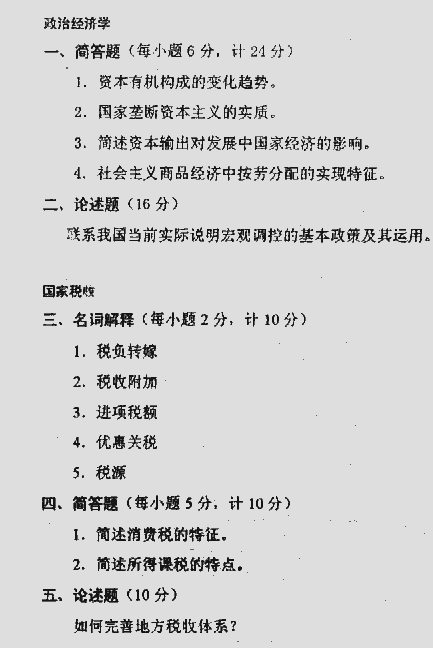 专业课考研经验 本站小编 FreeKaoyan 2018-01-22一、名词解释(每小题 6 分,共 30 分) 1. 配弟 2. 重农学派 3. 斯密教条 4. 萨伊定律 5. 边际生产力论 二、简述题(每小题 10 分,共 20 分) 1. 什么是 “ 三位一体 ” 公式? 2. 什么是 “ 时差利息论 ” ? 三、论述题(每小题 25 分,计 50 分) 1. ...