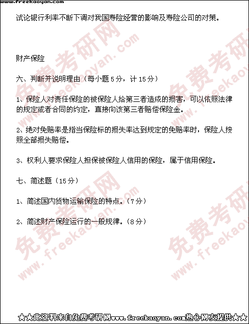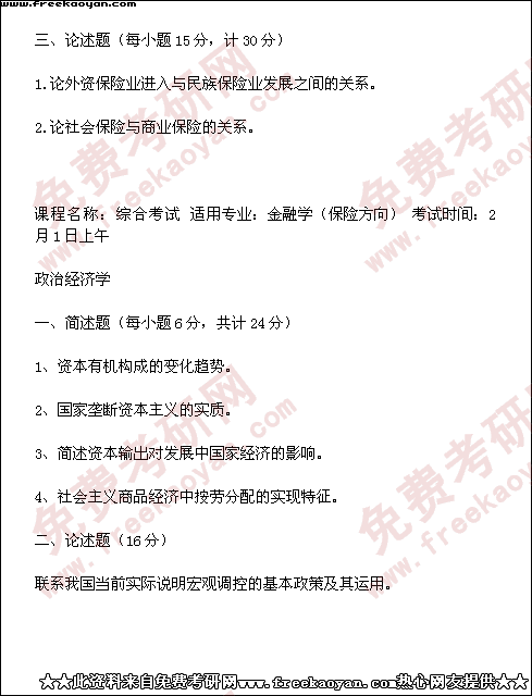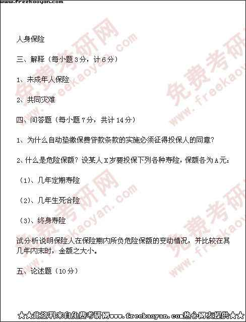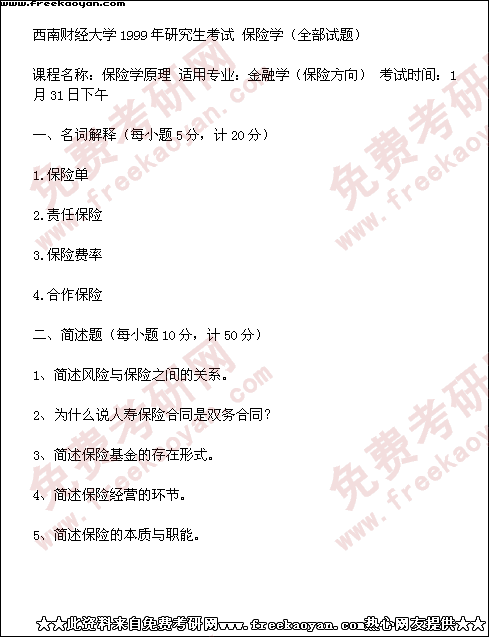 西南财经大学2000年考研真题-综合考试(政治经济学、人身保险、财产保险)