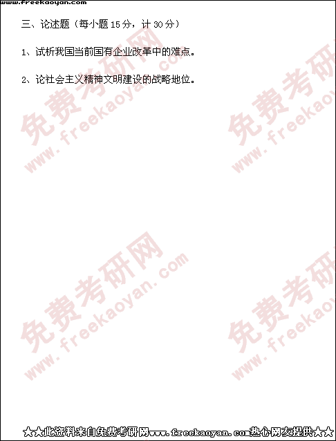 专业课考研经验 本站小编 FreeKaoyan 2018-01-22西南财经大学2000年考研真题-综合考试(政治经济学、中国经济地理学)