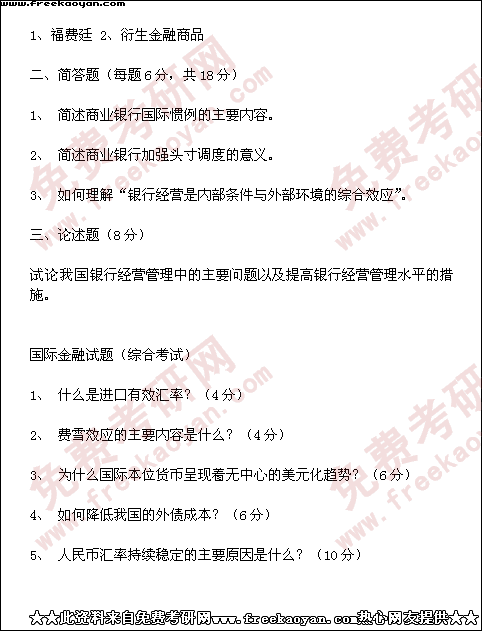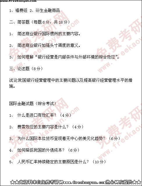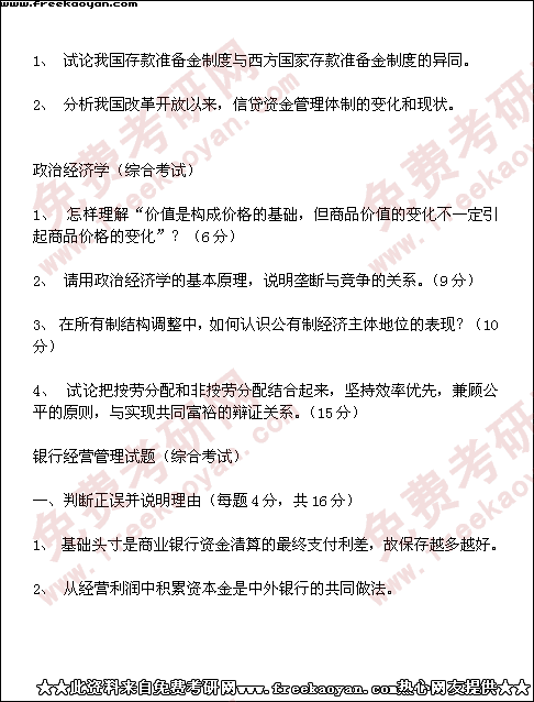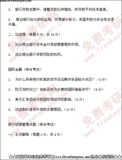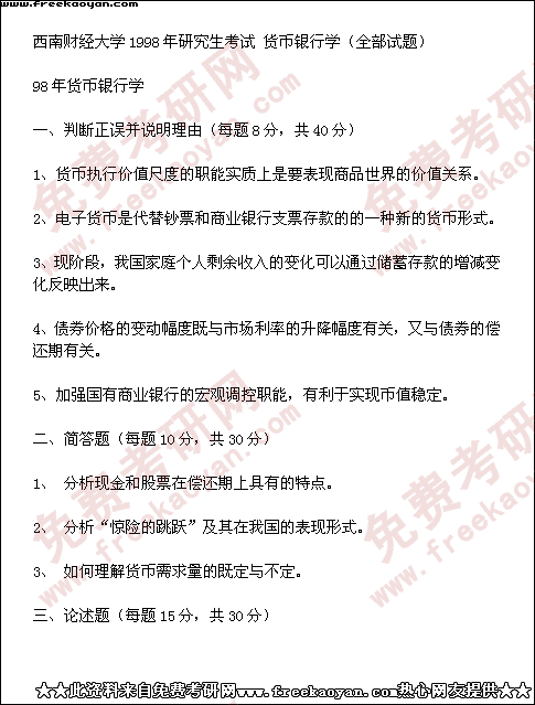 西南财经大学1998年考研真题-货币银行学(全部试题)