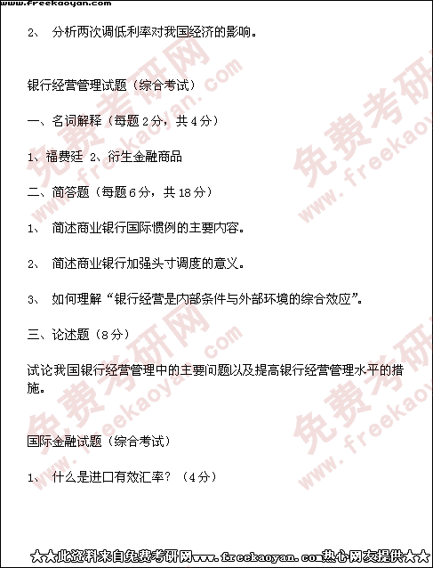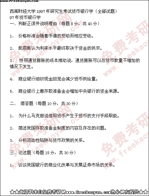 西南财经大学1997年考研真题-货币银行学(全部试题)