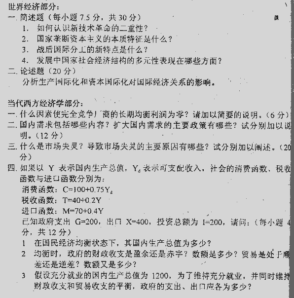相关话题/考研真题 西南财经大学 综合考试 西方经济学 世界经济
