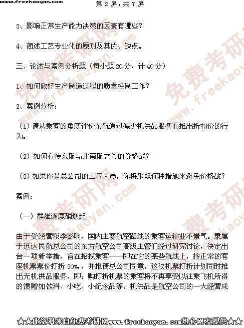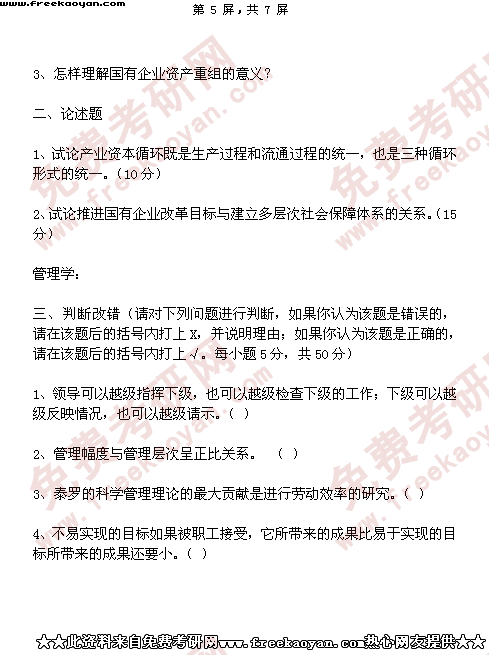 西南财经大学2001年考研真题-企业管理(所有试题)