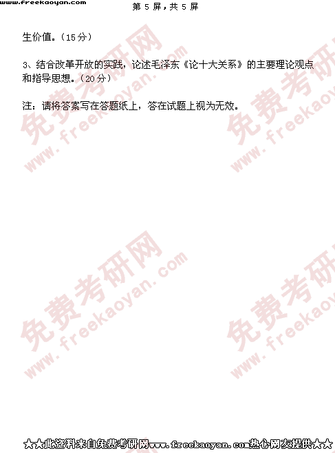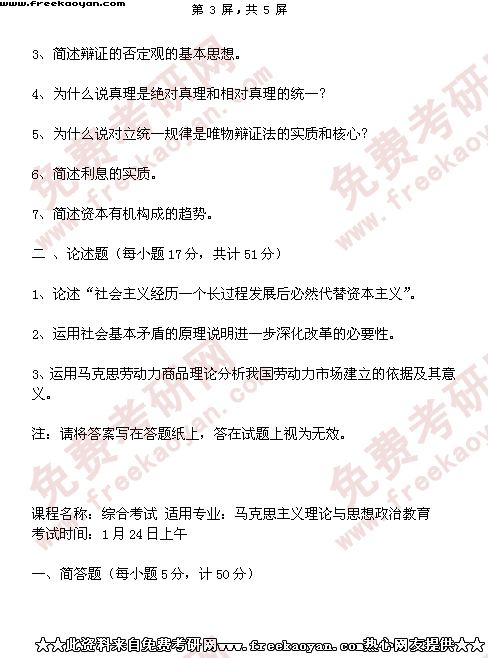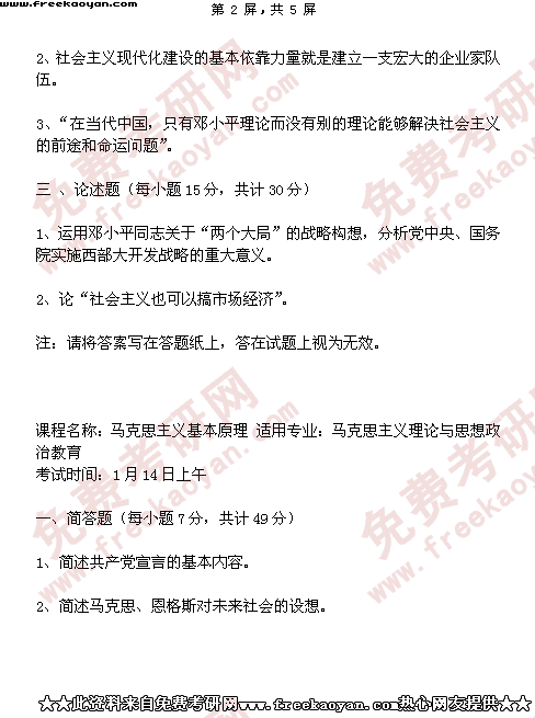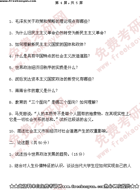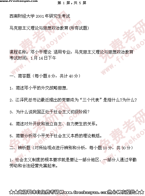西南财经大学2001年考研真题-马克思主义理论与思想政治教育(所有试题)