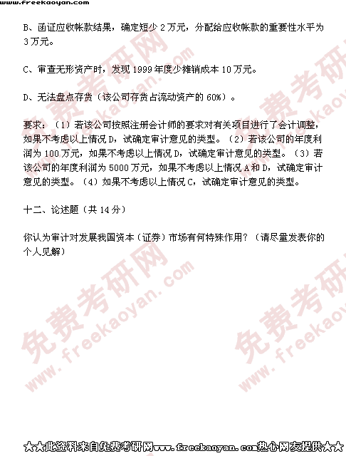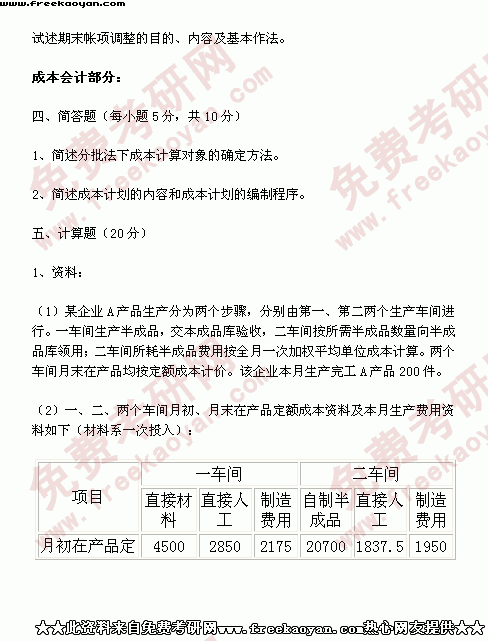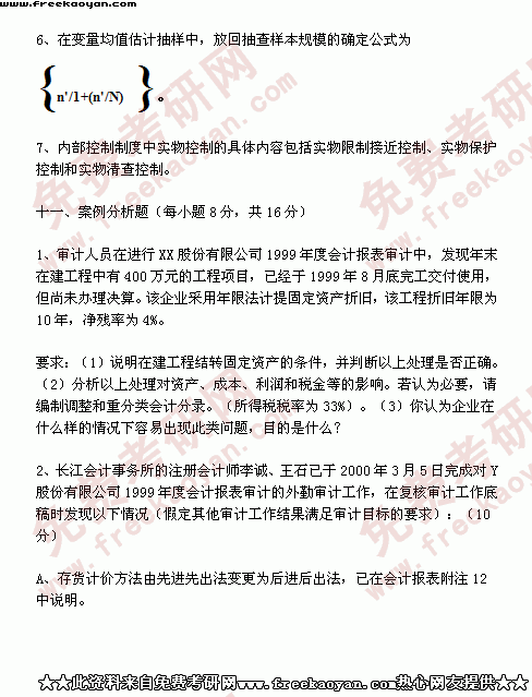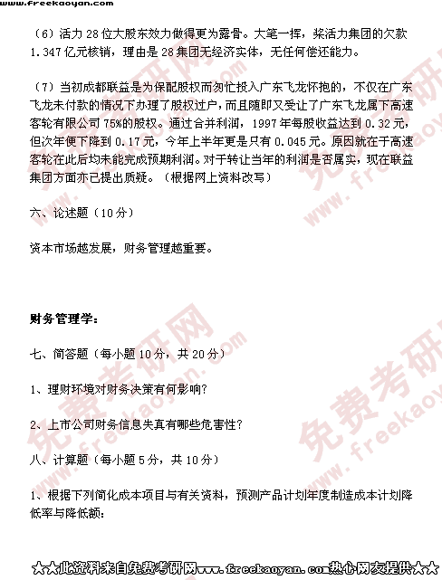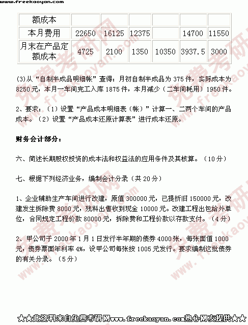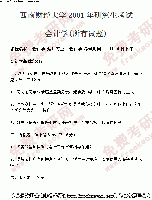 西南财经大学2001年考研真题-会计学(所有试题)
