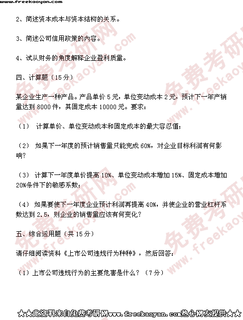 西南财经大学2001年考研真题-企业管理(所有试题)