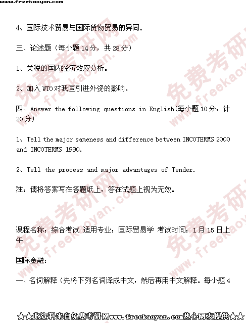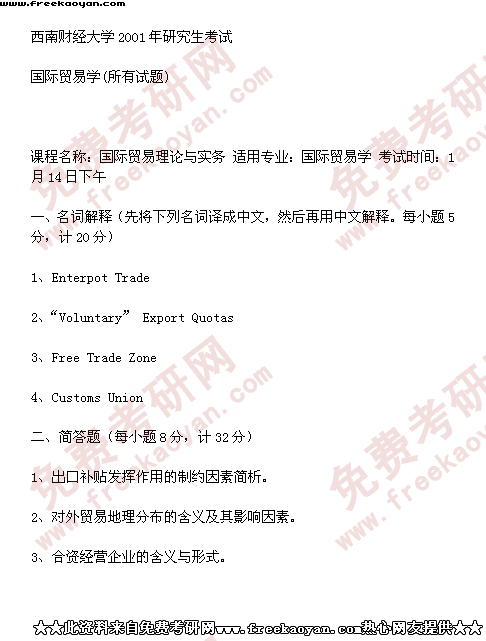 西南财经大学2001年考研真题-国际贸易学(所有试题)
