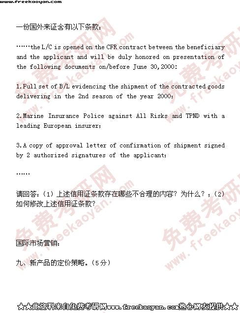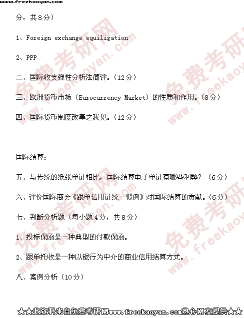西南财经大学2001年考研真题-金融学(货币方向所有试题)
