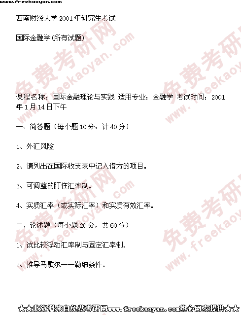 西南财经大学2001年考研真题-国际金融学(所有试题)