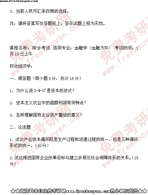西南财经大学2001年考研真题-金融学(货币方向所有试题)