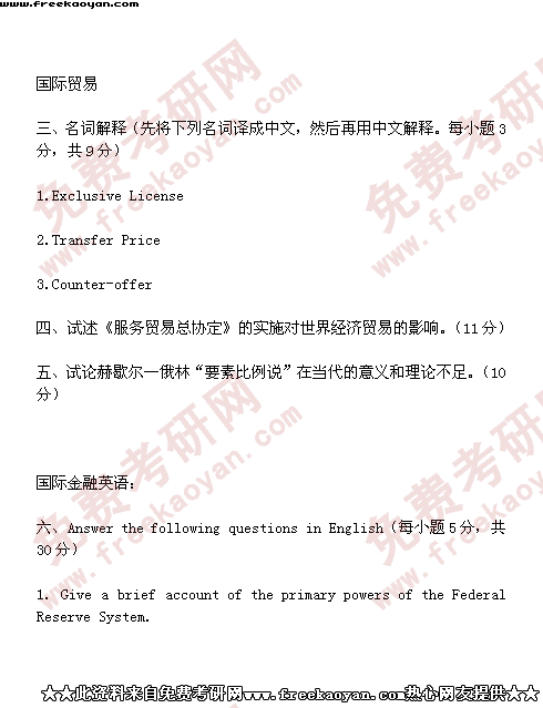 西南财经大学2001年考研真题-国际贸易学(所有试题)