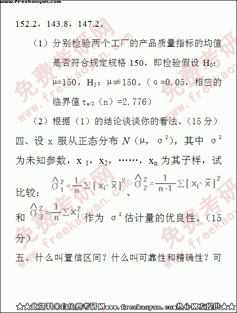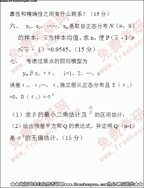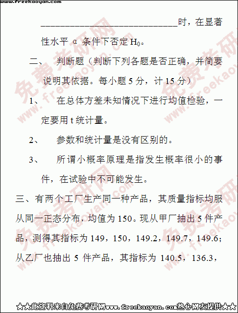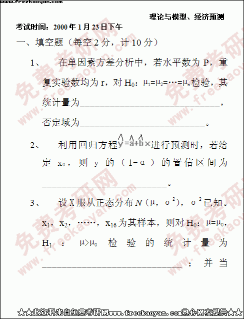 西南财经大学2000年考研真题-统计学(所有试题)