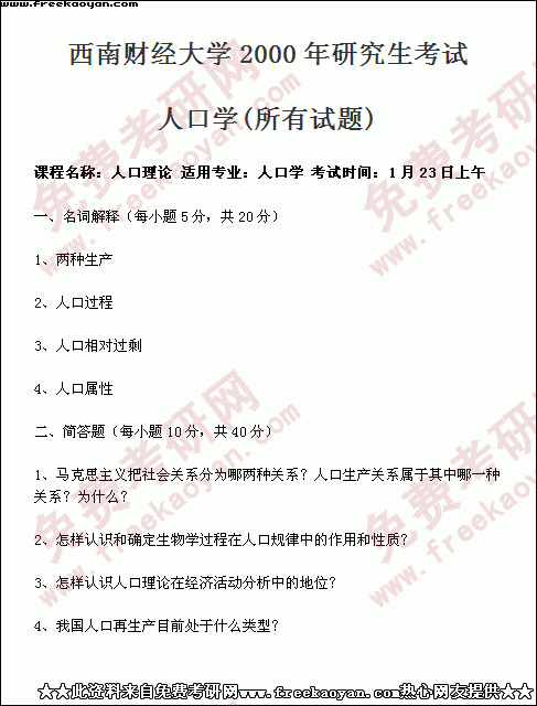 西南财经大学2001年考研真题-马克思主义理论与思想政治教育(所有试题)