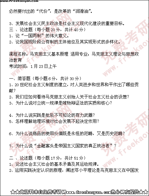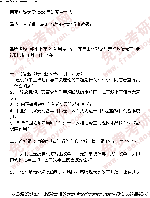 西南财经大学2000年考研真题-马克思主义理论与思想政治教育(所有试题)