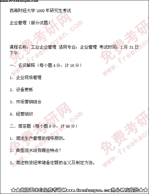 西南财经大学1999年考研真题-企业管理(部分试题)