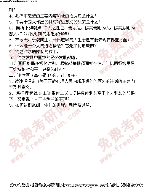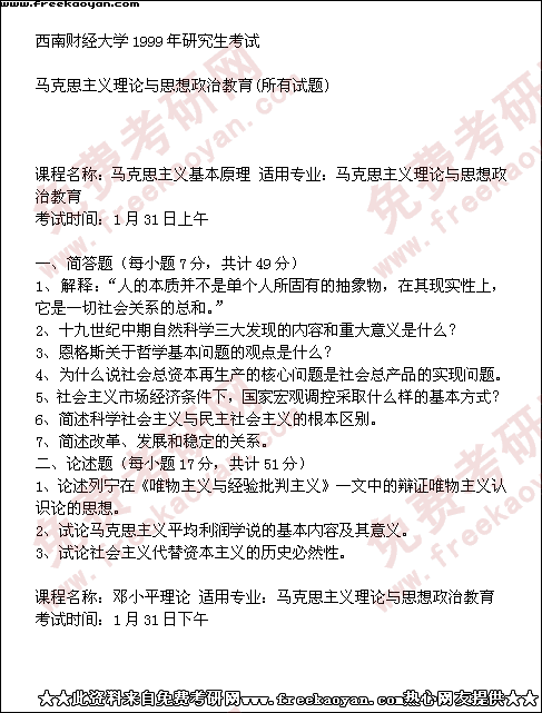 西南财经大学1999年考研真题-马克思主义理论与思想政治教育(所有试题)