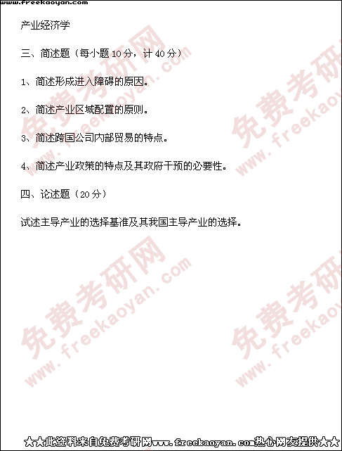 西南财经大学2000年考研真题-产业经济学(所有试题)