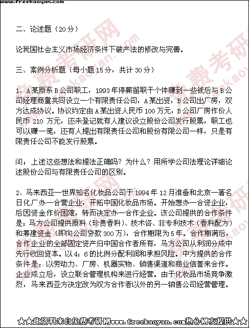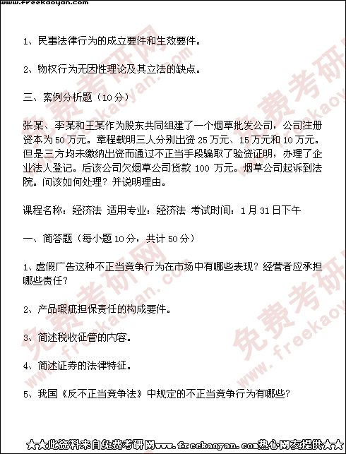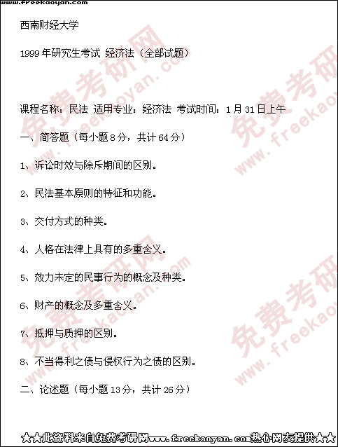 西南财经大学1999年考研真题-经济法(全部试题)