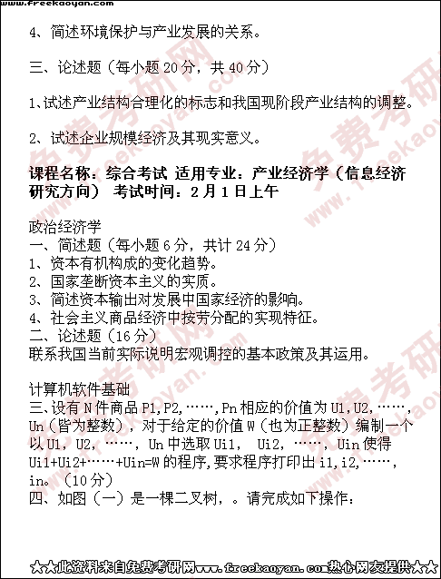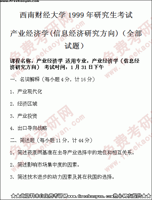 西南财经大学1999年考研真题-产业经济学(信息经济研究方向)(全部试题)
