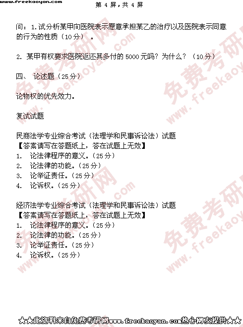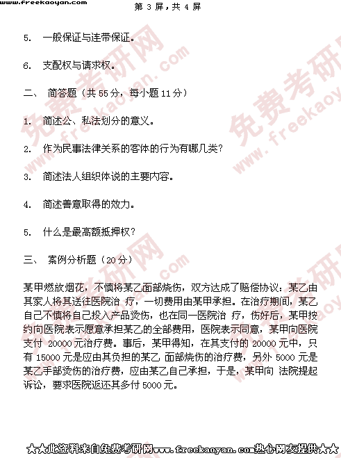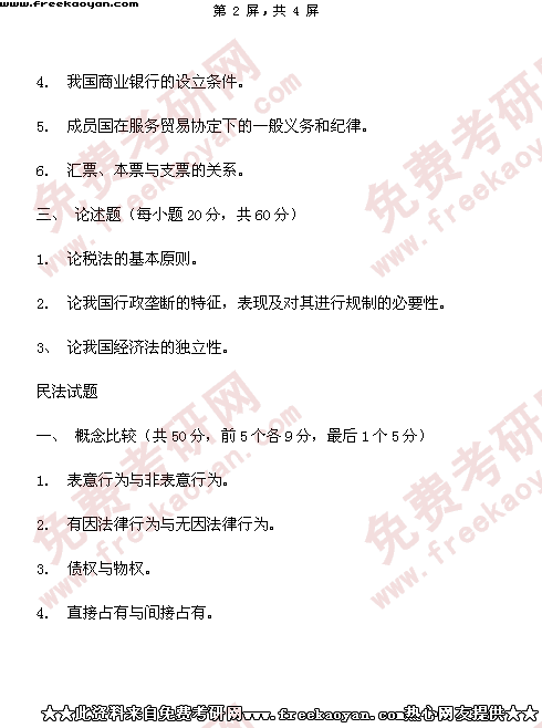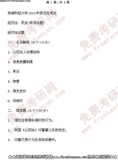西南财经大学2003年考研真题-经济法、民法(所有试题)