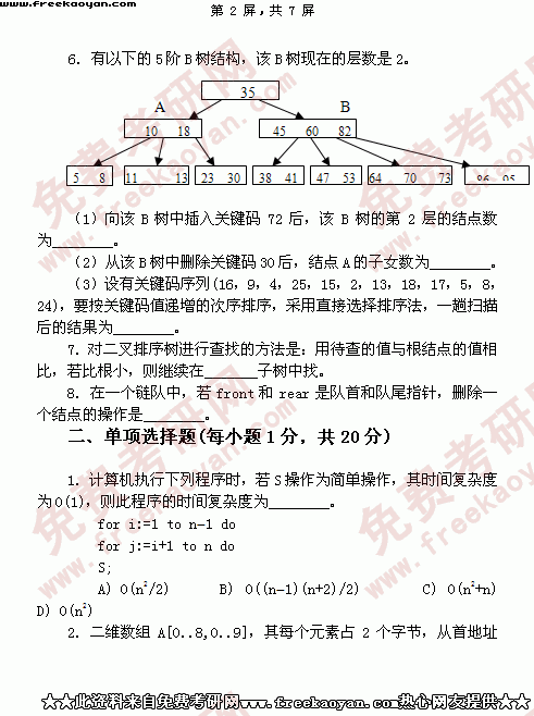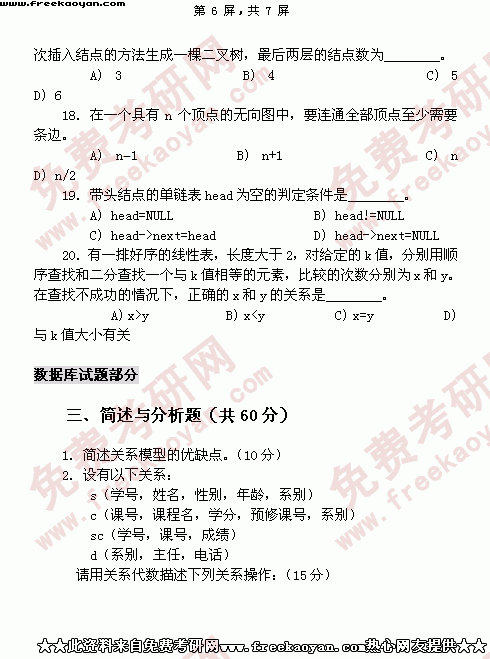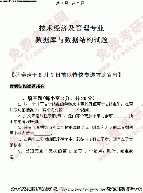 西南财经大学2003年考研真题-技术经济及管理专业数据库与数据结构试题