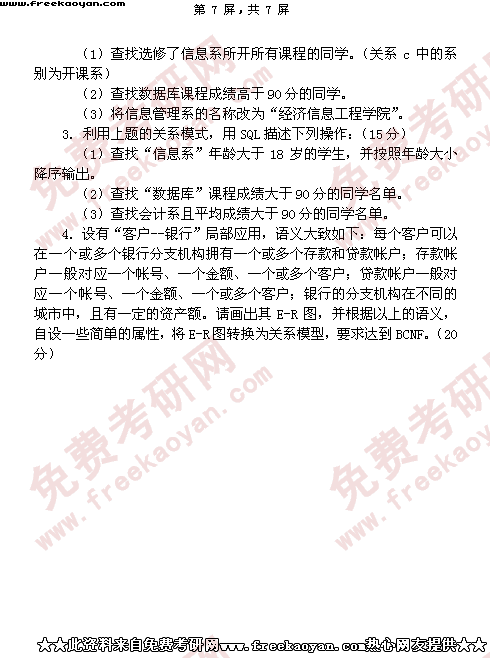 西南财经大学2003年考研真题-金融学(含保险学)专业数据库系统(所有试题)