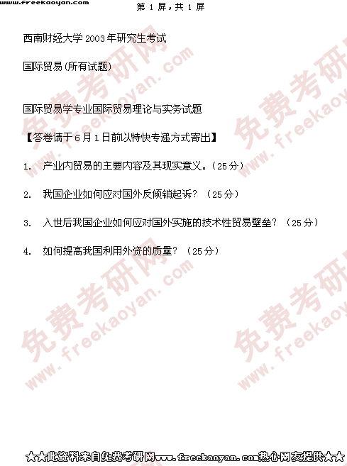 西南财经大学2003年考研真题-国际贸易(所有试题)
