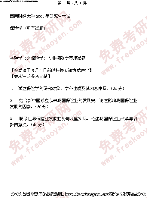 专业课考研经验 本站小编 FreeKaoyan 2018-01-22西南财经大学2003年考研真题-经济法、民法(所有试题)