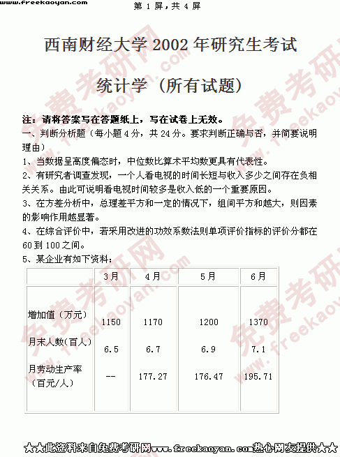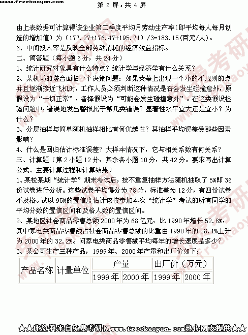 西南财经大学2002年考研真题-统计学(所有试题)