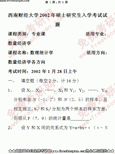 西南财经大学2002年考研真题-西方经济学(所有试题)