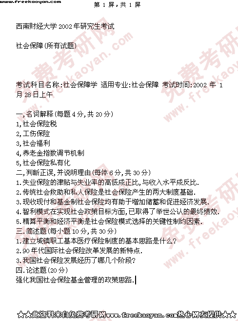 相关话题/考研真题 西南财经大学 试题 社会保障