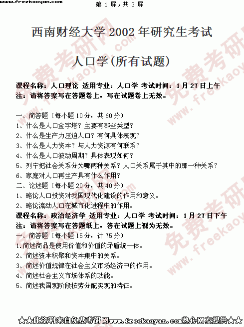 西南财经大学2002年考研真题-政治经济学(所有试题)