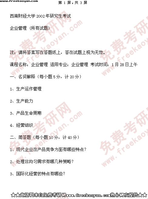 西南财经大学2002年考研真题-企业管理(所有试题)