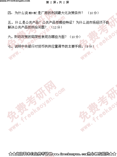 西南财经大学2002年考研真题-西方经济学(所有试题)